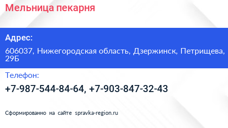 Мельница, пекарня по адресу 606037, Нижегородская область, Дзержинск, Петрищева, 29Б в дальнейшем Организация, размещена в следующих категориях: