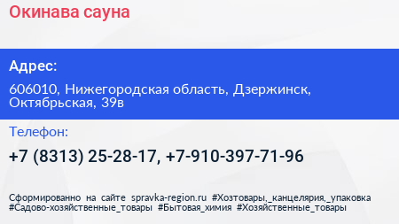 Окинава, сауна по адресу 606010, Нижегородская область, Дзержинск, Октябрьская, 39в в дальнейшем Организация, размещена в следующих категориях: