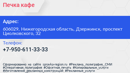 Печка, кафе по адресу 606029, Нижегородская область, Дзержинск, проспект Циолковского, 32 в дальнейшем Организация, размещена в следующих категориях: