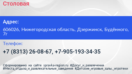 Столовая по адресу 606026, Нижегородская область, Дзержинск, Будённого, 7г в дальнейшем Организация, размещена в следующих категориях: