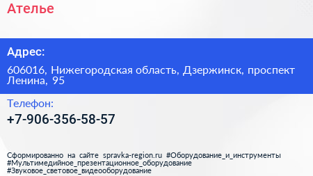 Ателье по адресу 606016, Нижегородская область, Дзержинск, проспект Ленина, 95 в дальнейшем Организация, размещена в следующих категориях: