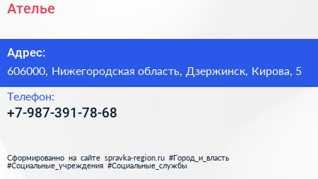 Ателье по адресу 606000, Нижегородская область, Дзержинск, Кирова, 5 в дальнейшем Организация, размещена в следующих категориях: