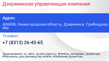 Дзержинская управляющая компания по адресу 606008, Нижегородская область, Дзержинск, Грибоедова, 40а в дальнейшем Организация, размещена в следующих категориях: