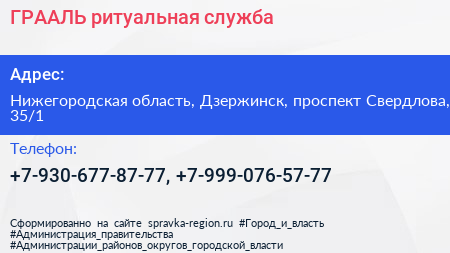 ГРААЛЬ, ритуальная служба по адресу Нижегородская область, Дзержинск, проспект Свердлова, 35/1 в дальнейшем Организация, размещена в следующих категориях: