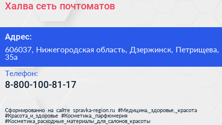 Халва, сеть почтоматов по адресу 606037, Нижегородская область, Дзержинск, Петрищева, 35а в дальнейшем Организация, размещена в следующих категориях: