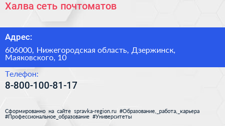 Халва, сеть почтоматов по адресу 606000, Нижегородская область, Дзержинск, Маяковского, 10 в дальнейшем Организация, размещена в следующих категориях: