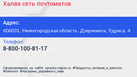 Халва, сеть почтоматов по адресу 606031, Нижегородская область, Дзержинск, Удриса, 4 в дальнейшем Организация, размещена в следующих категориях: