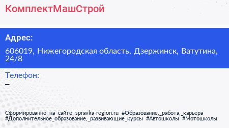КомплектМашСтрой по адресу 606019, Нижегородская область, Дзержинск, Ватутина, 24/8 в дальнейшем Организация, размещена в следующих категориях: