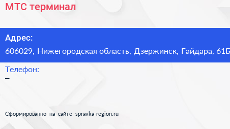 МТС, терминал по адресу 606029, Нижегородская область, Дзержинск, Гайдара, 61Б в дальнейшем Организация, размещена в следующих категориях: