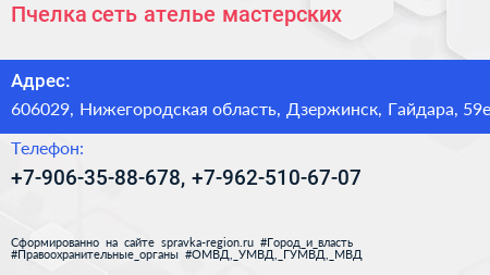 Пчелка, сеть ателье-мастерских по адресу 606029, Нижегородская область, Дзержинск, Гайдара, 59е в дальнейшем Организация, размещена в следующих категориях: