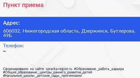 Пункт приема по адресу 606032, Нижегородская область, Дзержинск, Бутлерова, 49Б в дальнейшем Организация, размещена в следующих категориях: