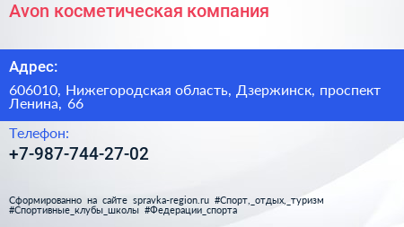 Avon, косметическая компания по адресу 606010, Нижегородская область, Дзержинск, проспект Ленина, 66 в дальнейшем Организация, размещена в следующих категориях: