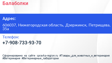 Балаболки по адресу 606037, Нижегородская область, Дзержинск, Петрищева, 35а в дальнейшем Организация, размещена в следующих категориях: