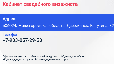 Кабинет свадебного визажиста по адресу 606024, Нижегородская область, Дзержинск, Ватутина, 82 в дальнейшем Организация, размещена в следующих категориях: