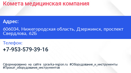 Комета, медицинская компания по адресу 606034, Нижегородская область, Дзержинск, проспект Свердлова, 62Б в дальнейшем Организация, размещена в следующих категориях: