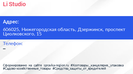 Li Studio по адресу 606025, Нижегородская область, Дзержинск, проспект Циолковского, 15 в дальнейшем Организация, размещена в следующих категориях:
