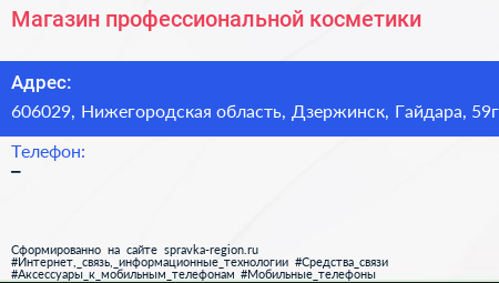 Магазин профессиональной косметики по адресу 606029, Нижегородская область, Дзержинск, Гайдара, 59г в дальнейшем Организация, размещена в следующих категориях: