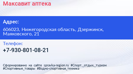 Максавит, аптека по адресу 606023, Нижегородская область, Дзержинск, Маяковского, 21 в дальнейшем Организация, размещена в следующих категориях: