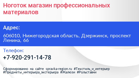 Ноготок, магазин профессиональных материалов по адресу 606010, Нижегородская область, Дзержинск, проспект Ленина, 66 в дальнейшем Организация, размещена в следующих категориях: