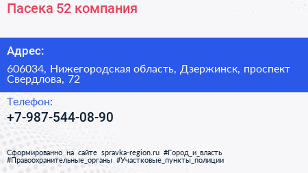Пасека 52, компания по адресу 606034, Нижегородская область, Дзержинск, проспект Свердлова, 72 в дальнейшем Организация, размещена в следующих категориях: