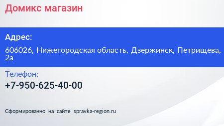 Домикс, магазин по адресу 606026, Нижегородская область, Дзержинск, Петрищева, 2а в дальнейшем Организация, размещена в следующих категориях: