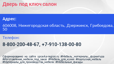 Дверь под ключ, салон по адресу 606008, Нижегородская область, Дзержинск, Грибоедова, 50 в дальнейшем Организация, размещена в следующих категориях: