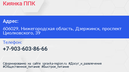Киянка ППК по адресу 606029, Нижегородская область, Дзержинск, проспект Циолковского, 39 в дальнейшем Организация, размещена в следующих категориях: