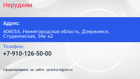 Нерудхим по адресу 606016, Нижегородская область, Дзержинск, Студенческая, 34в к2 в дальнейшем Организация, размещена в следующих категориях: