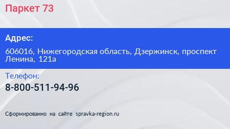 Паркет 73 по адресу 606016, Нижегородская область, Дзержинск, проспект Ленина, 121а в дальнейшем Организация, размещена в следующих категориях:
