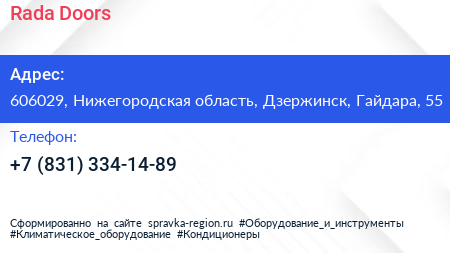 Rada Doors по адресу 606029, Нижегородская область, Дзержинск, Гайдара, 55 в дальнейшем Организация, размещена в следующих категориях: