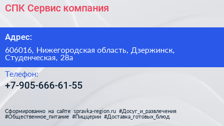 СПК-Сервис, компания по адресу 606016, Нижегородская область, Дзержинск, Студенческая, 28а в дальнейшем Организация, размещена в следующих категориях: