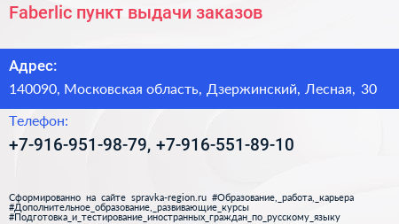 Faberlic, пункт выдачи заказов по адресу 140090, Московская область, Дзержинский, Лесная, 30 в дальнейшем Организация, размещена в следующих категориях: