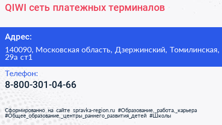 QIWI, сеть платежных терминалов по адресу 140090, Московская область, Дзержинский, Томилинская, 29а ст1 в дальнейшем Организация, размещена в следующих категориях:
