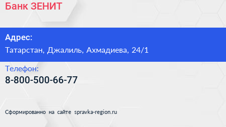Банк ЗЕНИТ по адресу Татарстан, Джалиль, Ахмадиева, 24/1 в дальнейшем Организация, размещена в следующих категориях: