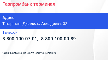 Газпромбанк, терминал по адресу Татарстан, Джалиль, Ахмадиева, 32 в дальнейшем Организация, размещена в следующих категориях: