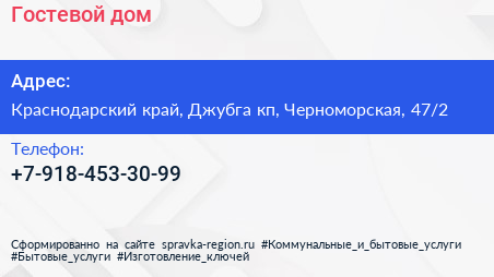 Гостевой дом по адресу Краснодарский край, Джубга кп, Черноморская, 47/2 в дальнейшем Организация, размещена в следующих категориях: