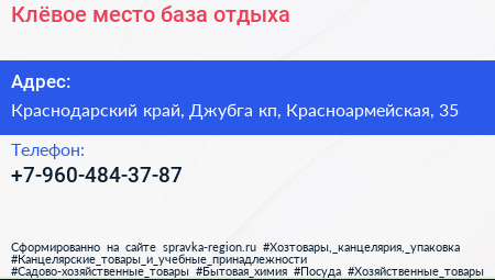 Клёвое место, база отдыха по адресу Краснодарский край, Джубга кп, Красноармейская, 35 в дальнейшем Организация, размещена в следующих категориях: