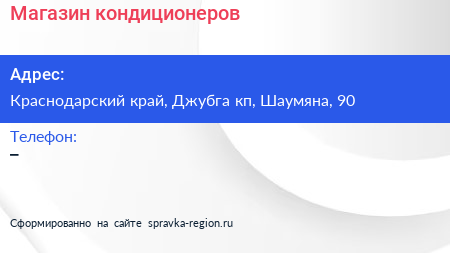 Магазин кондиционеров по адресу Краснодарский край, Джубга кп, Шаумяна, 90 в дальнейшем Организация, размещена в следующих категориях: