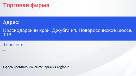 Торговая фирма по адресу Краснодарский край, Джубга кп, Новороссийское шоссе, 119 в дальнейшем Организация, размещена в следующих категориях: