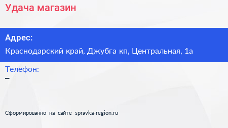 Удача, магазин по адресу Краснодарский край, Джубга кп, Центральная, 1а в дальнейшем Организация, размещена в следующих категориях: