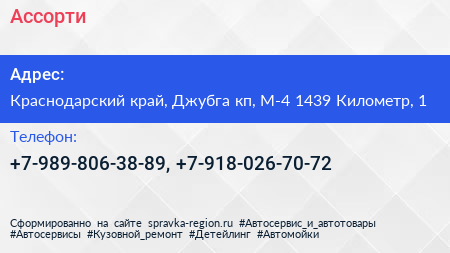 Ассорти по адресу Краснодарский край, Джубга кп, М-4 1439 Километр, 1 в дальнейшем Организация, размещена в следующих категориях: