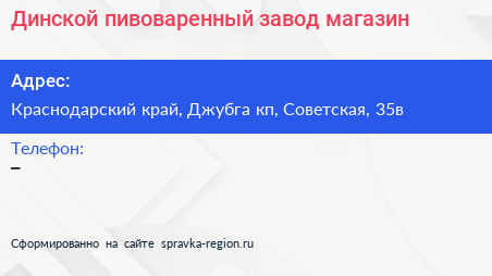 Динской пивоваренный завод, магазин по адресу Краснодарский край, Джубга кп, Советская, 35в в дальнейшем Организация, размещена в следующих категориях: