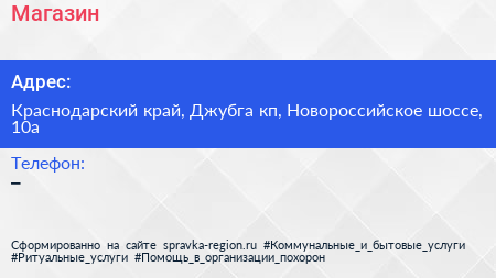 Магазин по адресу Краснодарский край, Джубга кп, Новороссийское шоссе, 10а в дальнейшем Организация, размещена в следующих категориях: