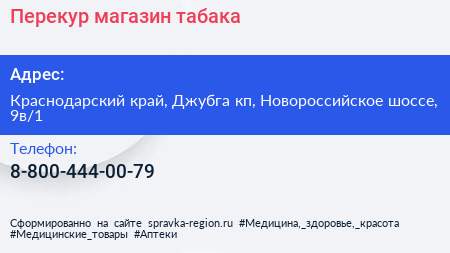 Перекур, магазин табака по адресу Краснодарский край, Джубга кп, Новороссийское шоссе, 9в/1 в дальнейшем Организация, размещена в следующих категориях: