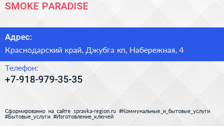 SMOKE PARADISE по адресу Краснодарский край, Джубга кп, Набережная, 4 в дальнейшем Организация, размещена в следующих категориях: