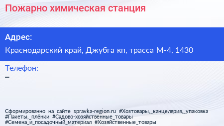 Пожарно-химическая станция по адресу Краснодарский край, Джубга кп, трасса М-4, 1430 в дальнейшем Организация, размещена в следующих категориях: