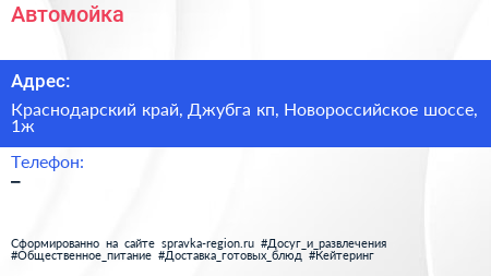 Автомойка по адресу Краснодарский край, Джубга кп, Новороссийское шоссе, 1ж в дальнейшем Организация, размещена в следующих категориях: