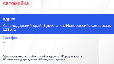 Автомойка по адресу Краснодарский край, Джубга кп, Новороссийское шоссе, 121Б/1 в дальнейшем Организация, размещена в следующих категориях: