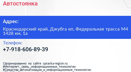 Автостоянка по адресу Краснодарский край, Джубга кп, Федеральная трасса М4 1428 км, 1а в дальнейшем Организация, размещена в следующих категориях: