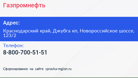 Газпромнефть по адресу Краснодарский край, Джубга кп, Новороссийское шоссе, 123/2 в дальнейшем Организация, размещена в следующих категориях: